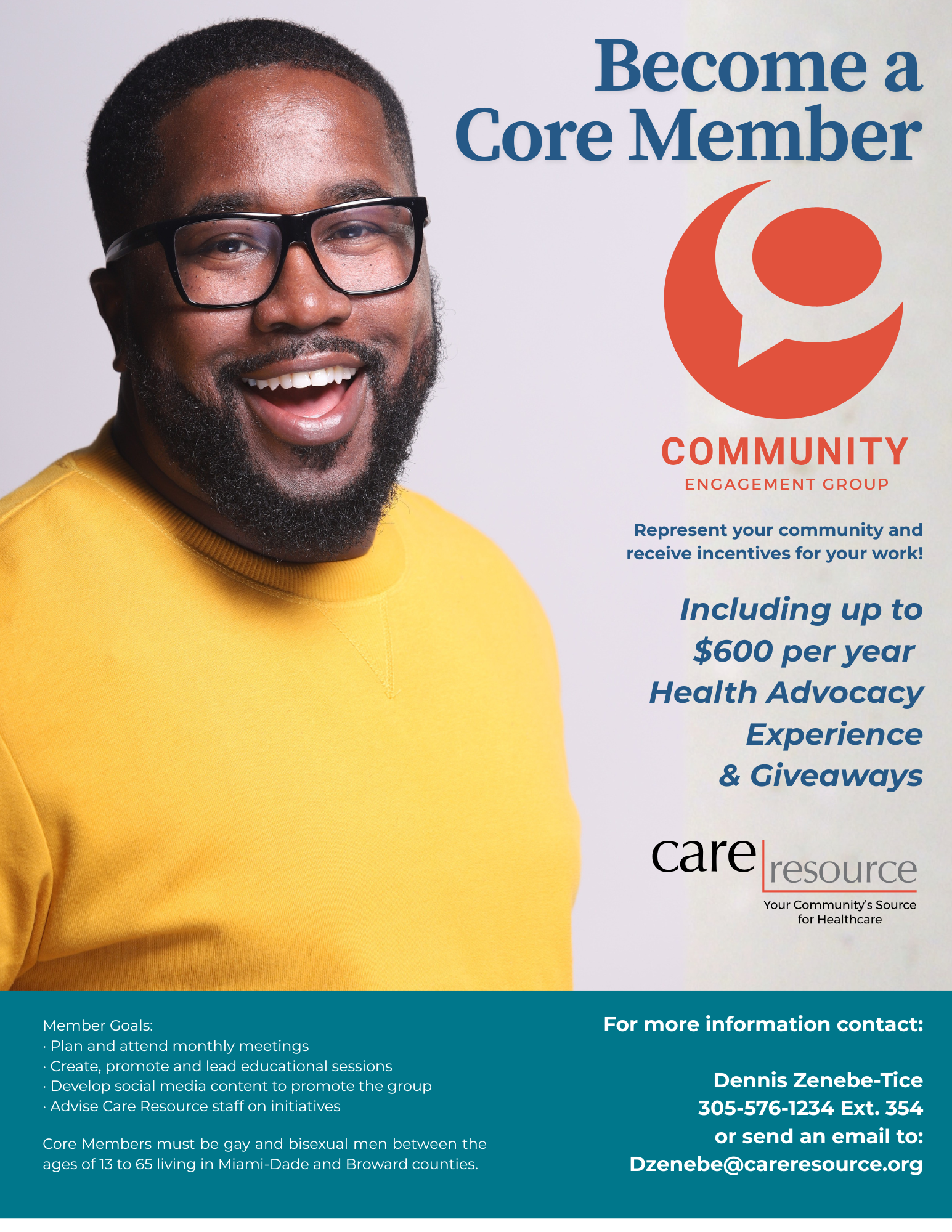 Description: : The purpose of Care Resource’s Client Advisory Board (CAB) is to provide an opportunity for client feedback on shared experiences, gain greater insight into the health center’s programs and services, engage with others on healthcare-related matters, and further develop skills and relationships to serve as an effective healthcare advocate.