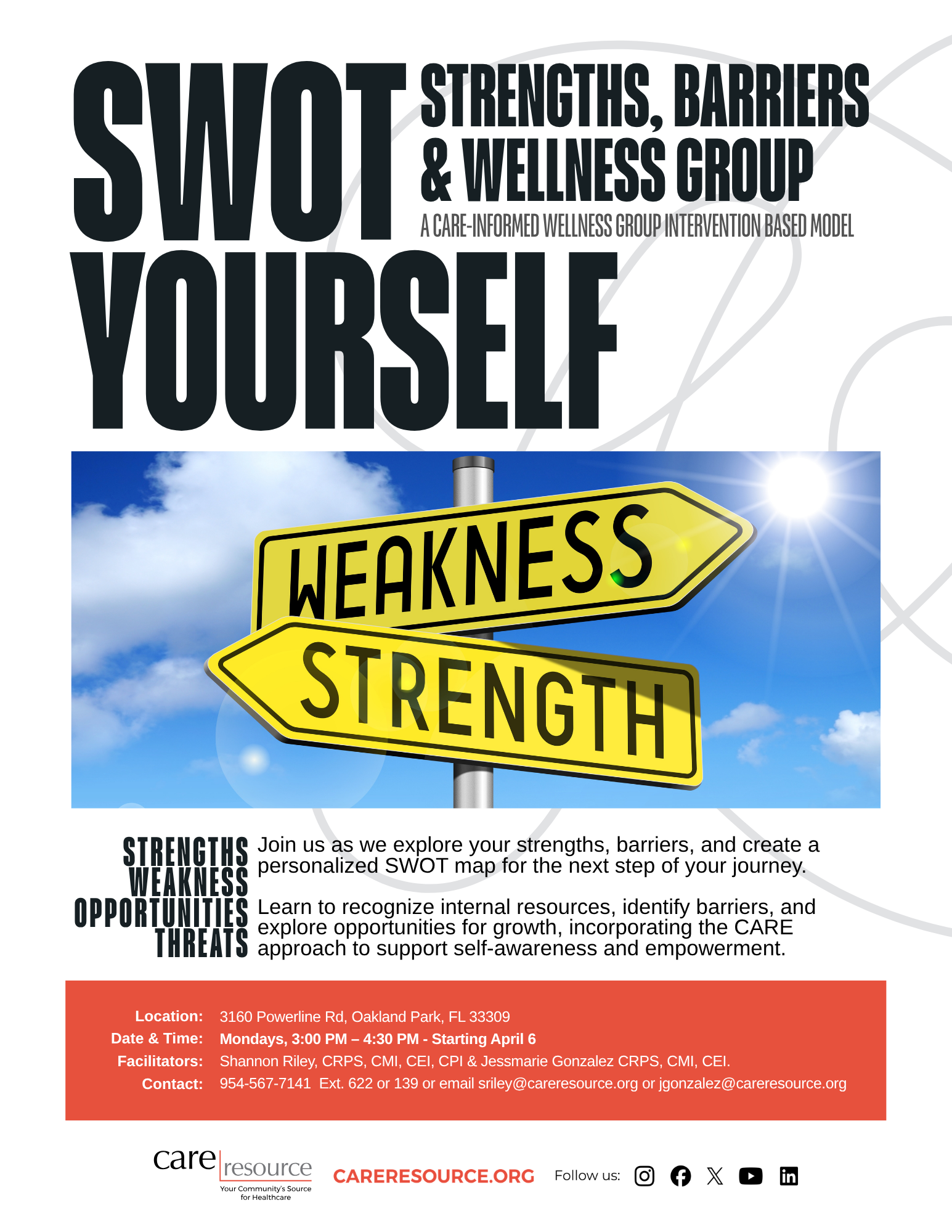 Información de contacto para el grupo: 305-576-1234 Ext. 630 o sbussey@careresource.org